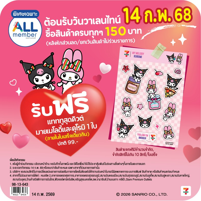 Exclusively available for a limited time at participating 7-Eleven Thailand stores nationwide, this loyalty promotion invites customers to collect the special premiums while stocks last.