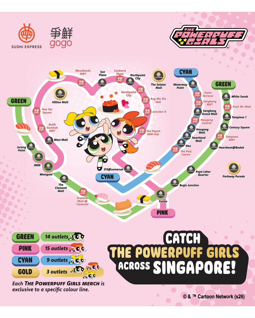 Color, fun and nostalgia are brought into dining with Sushi Express and The Powerpuff Girls limited-time collaboration 🍣